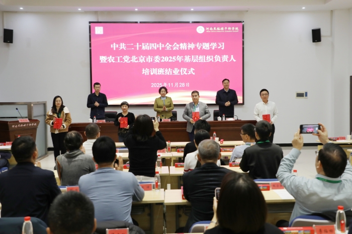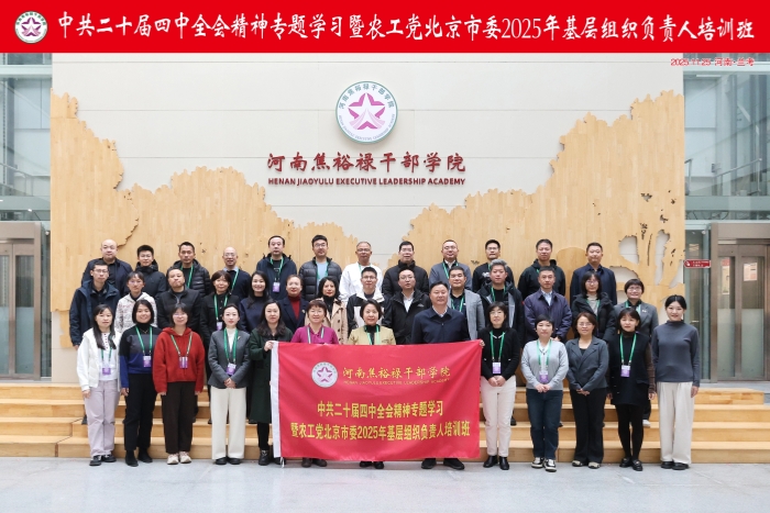 为深入学习贯彻中共二十届四中全会精神,进一步提升基层组织负责人的政治素养和综合素质,2025年11月24日至28日,农工党北京市委以“学习贯彻中共二十届四中全会精神”为主题,在京豫两地举办2025年基层组织负责人培训班。市委会专职副主委、内部监督委员会主任江欣带队,全市基层组织负责人代表和机关干部共39人参加集中培训。
