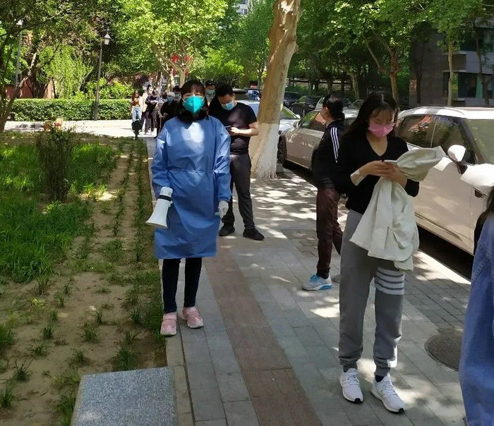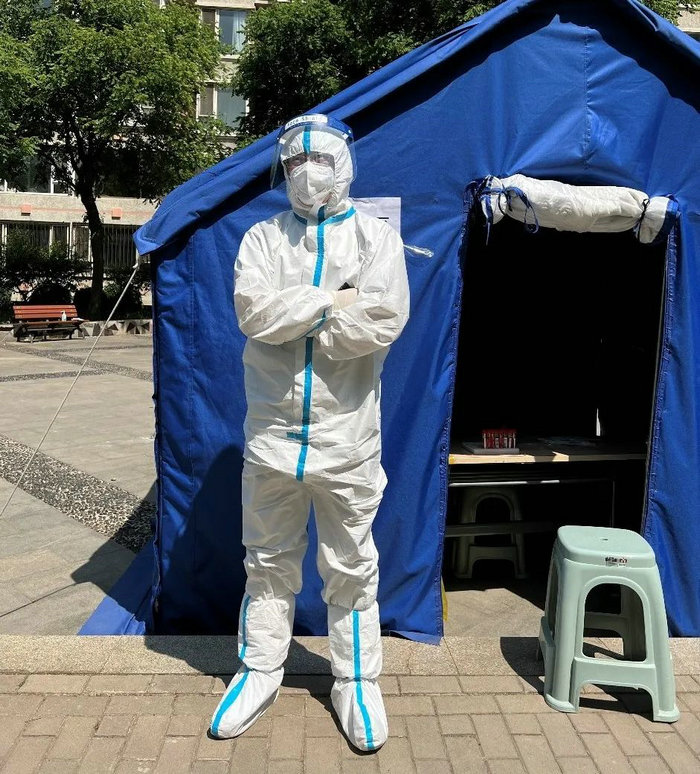 区工委副主委姜涛在社区参加核酸采样工作