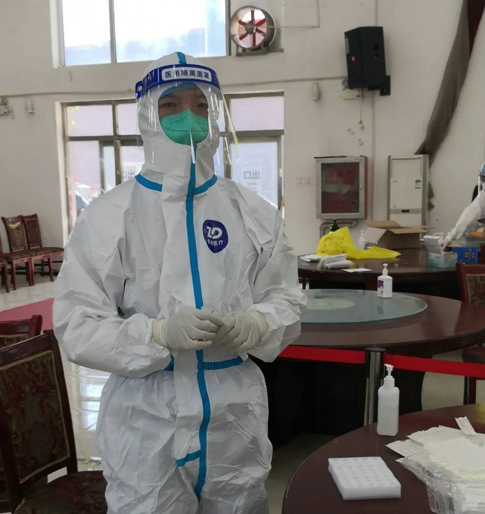 区工委委员张莎娜进行核酸检测工作并参加六里桥社区核酸采样工作