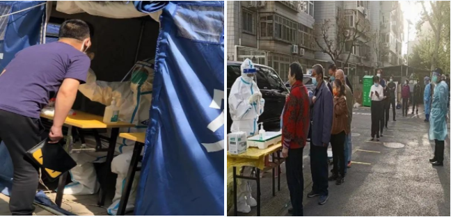 区工委党员王军杰组织带领单位老年驿站职工配合社区做核酸检测工作