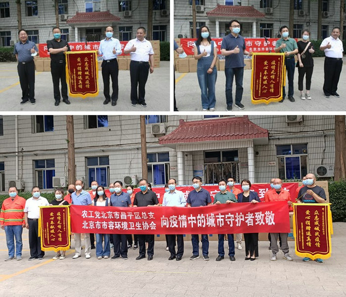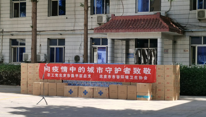 5月31日,农工党昌平区总支、北京市市容环境卫生协会联合向昌平区环卫处捐赠防疫物资,向昌平区环卫处的广大职工致以诚挚的问候,助力环卫工作者抗疫防护。本次爱心捐赠共筹集了N95口罩2万只,一次性医用口罩2万只,矿泉水400提,84消毒液4000公斤。