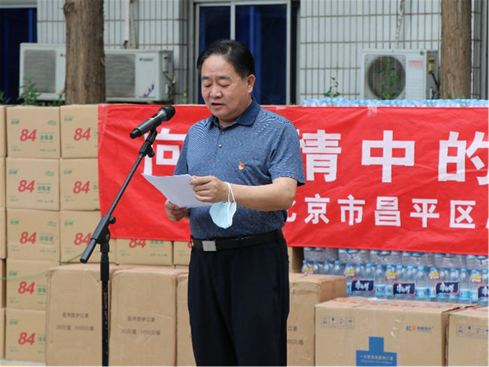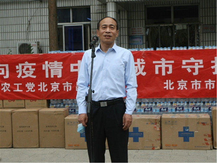 刘振松代表环卫处向捐赠方表达了感谢,他表示:农工党昌平区总支和北京市市容环境卫生协会为我们打赢防疫保卫战鼓劲加油,我们一定牢记全心全意为人民服务的宗旨,继续发扬“宁愿一人脏,换来万家净”的环卫精神,切实在工作中做好防疫工作,为昌平区的抗疫和环境卫生建设工作作出我们最大的贡献。