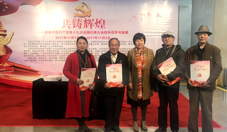 2017年11月1日上午,为热烈庆祝中国共产党第十九次全国大表大会胜利召开,由北京社会主义学院联合民革北京市委、民盟北京市委、民建北京市委、民进北京市委、农工党北京市委、致公党北京市委、台盟北京市委、北京师白艺术研究会等多家单位,共同举办了“共铸辉煌-庆祝中国共产党第十九次全国代表大会胜利召开书画展”活动。