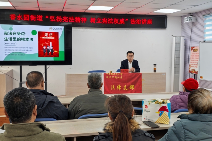 11月18日,农工党朝阳区委法律支部主委王兴尧受邀赴延庆区香水园街道,代表法律支部开展“弘扬宪法精神 树立宪法权威”专题讲座。