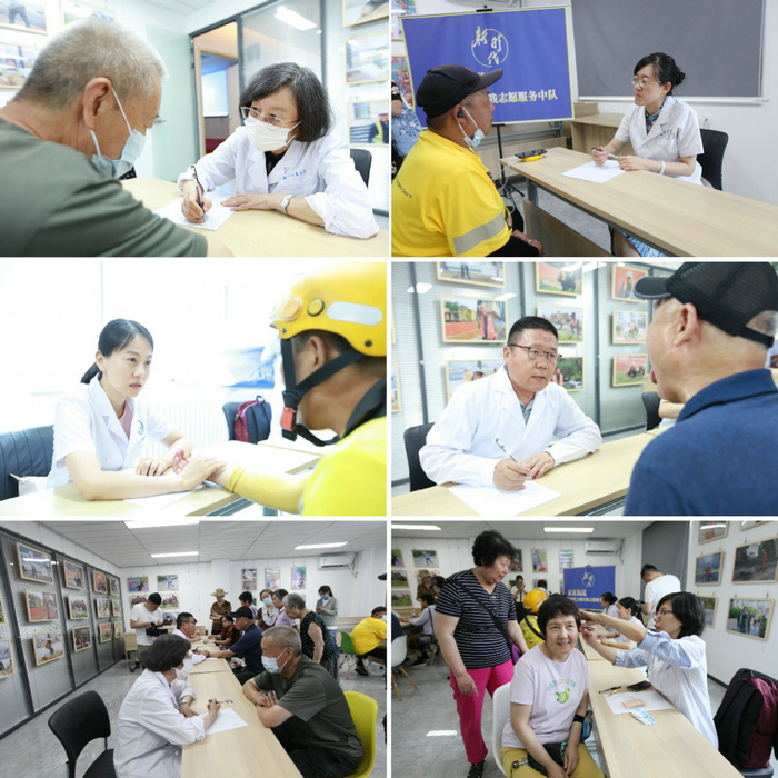 讲座结束后,农工党北京中医药大学支部专家郭华、张林、赵思佳、徐砚通,中共北京中医药大学机关党委继续教育学部党支部专家刘振权、邓亚楠为社区居民进行现场中医义诊,指导大家如何结合中医缓解不适症状,养成健康生活习惯。