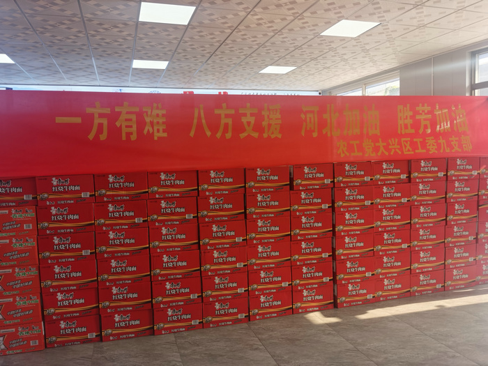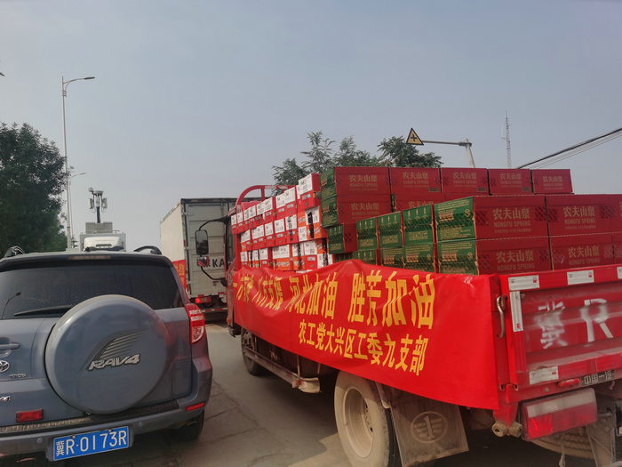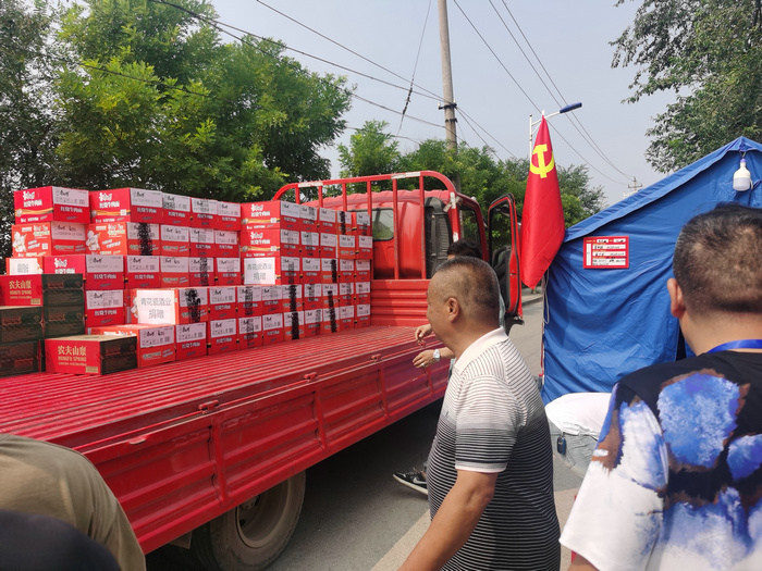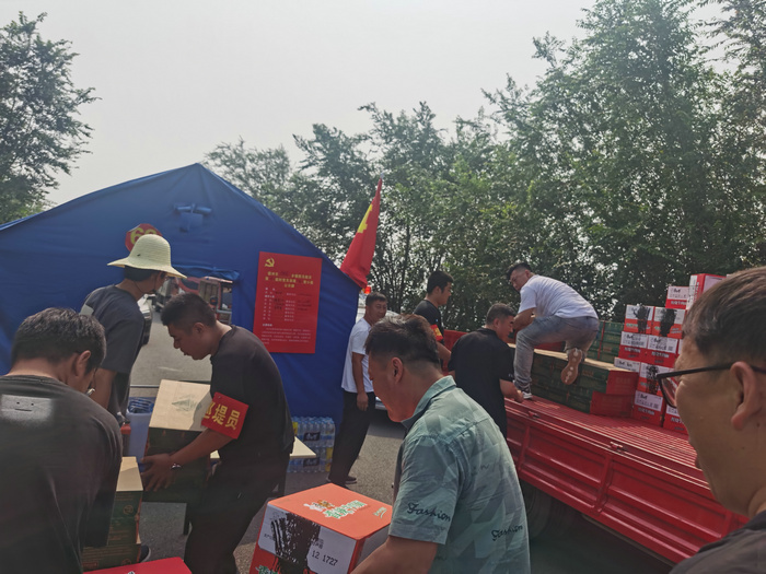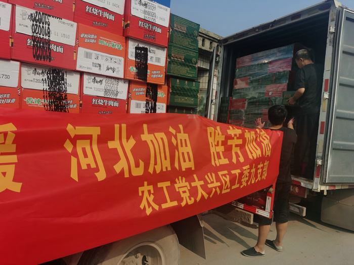 农工党大兴区工委九支部捐赠队伍对接了胜芳24个大队防汛抗洪救灾指挥所,在最短的时间为他们送去300箱矿泉水和300箱方便面、咸鸭蛋、毛巾等物资,帮助灾民解决物资短缺问题,奉献爱心共渡难关。