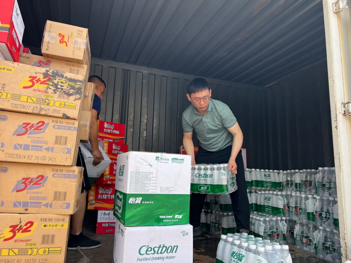 生态环境总支部筹建委员会在了解到淤白村受损情况和应急需求的情况下,于8月7日根据总支党员向受灾地区捐款献爱心意愿民主投票结果,决定以全体66名党员的名义对该村进行第一轮对口赈灾捐赠。灾情就是命令,为了尽快将党员的心意和善举传递到受灾地区群众,受筹建委员会临时负责人於方同志的委托,筹建委员会成员王迎、党员钦兆森分别落实地方对接和协调应急物资采购。8月8日20时,共计278箱包括矿泉水、方便面、苏打饼干价值1万元人民币的赈灾物资完成装车。