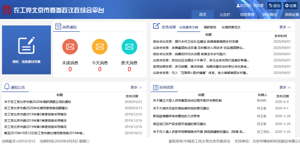 为提供更便捷、高效的服务,农工党北京市委社情民意信息反映系统于 2020年04月07日零时升级。本次系统更新内容如下: