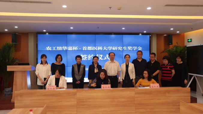 农工党北京市委秘书长江欣、首都医科大学党委副书记刘芳、北京华嘉公益基金会理事长李凯璇共同签署合作协议,标志着农工情华嘉杯·首都医科大学研究生奖学金正式启动。奖学金的设立是为了支持首都医科大学培养医学创新拔尖人才,激励在校医学研究生潜心医学研究,助力首都医疗事业蓬勃发展,探索打造精准助学品牌。