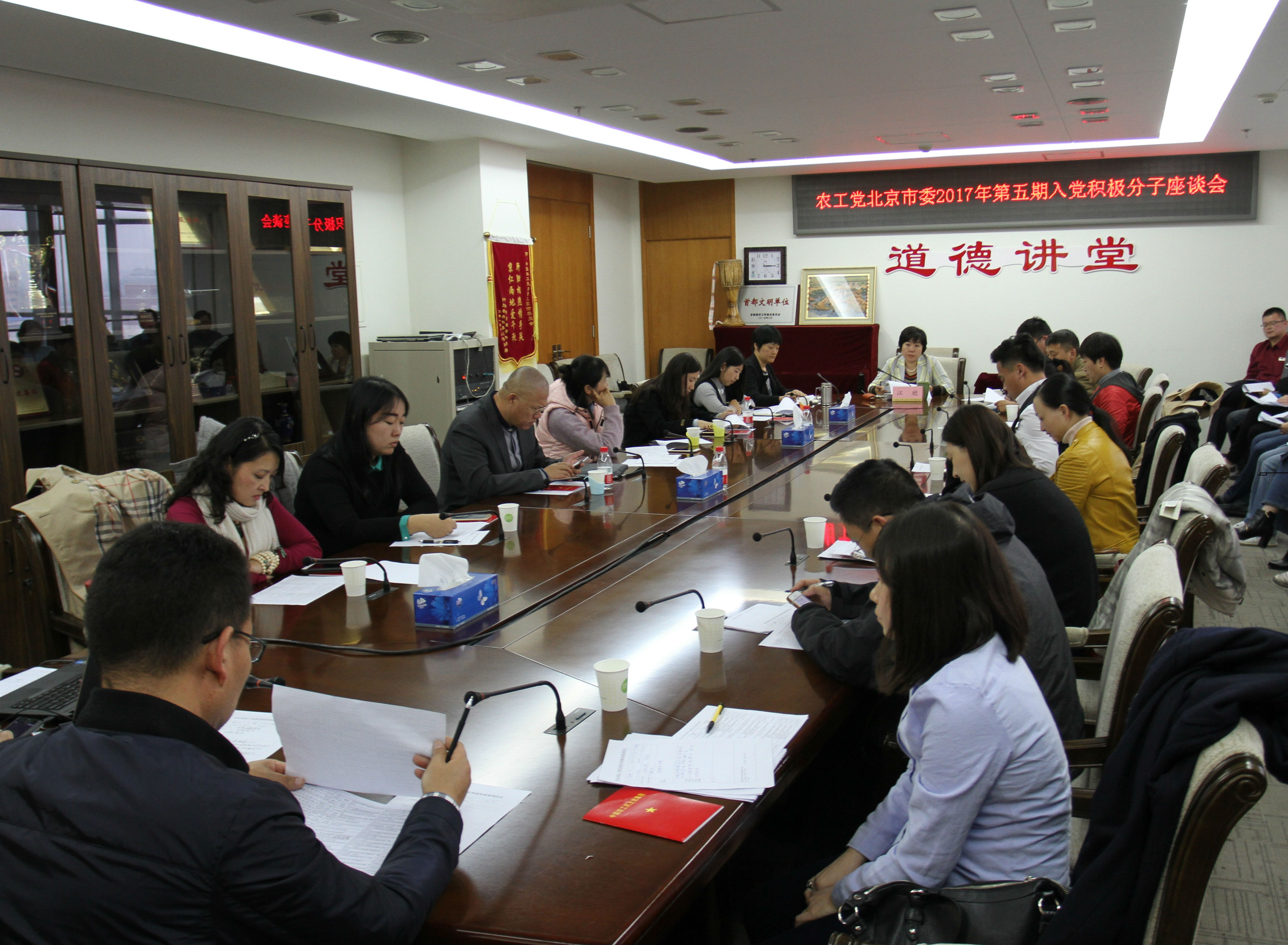 2017年10月25日,在党派楼九层914会议室举办了农工党北京市委2017年第五期入党积极分子座谈会。市委秘书长江欣同志参加会议并讲话,34名积极分子参加座谈。