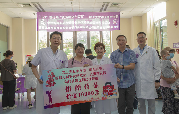 6月27日上午,在农工党北京市委的推动下,“8+1”在行动 “我为群众办实事”——农工党首都儿研所支部、中共首都儿研所普外科骨科支部联合医疗帮扶活动在门头沟区妇幼保健院举行。农工党北京市委社会服务处处长张亚娟,农工党北京市委常委、首都儿研所支部主委、市政协委员马立霜与区妇幼保健院书记刘晓华、院长杨鹏等院领导共同参加活动。