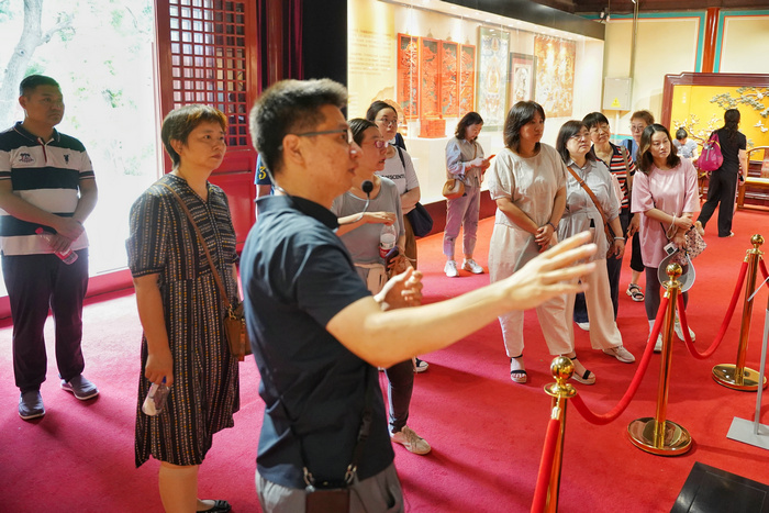 会后,大家参观了北京燕京八绝博物馆,学习了解金漆镶嵌、花丝镶嵌、景泰蓝、牙雕、玉雕、雕漆、京绣、宫毯八种非遗技艺,感受中华民族非遗技艺的发扬光大和历史延续。