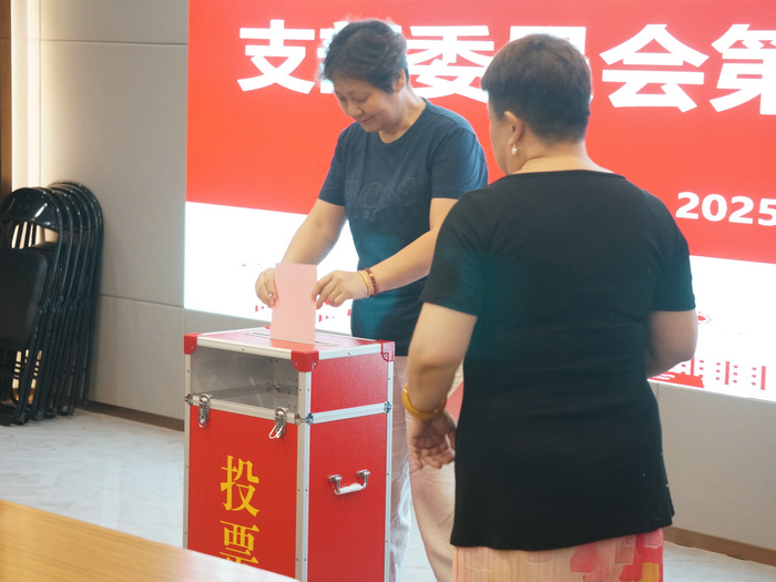 党员们通过现场投票的方式选举王楠、冯彩虹、史大昕、曲申、霍毅欣担任第五届支部委员。随后召开新一届支部委员会第一次全体会议,选举霍毅欣担任主委,冯彩虹、曲申担任副主委。