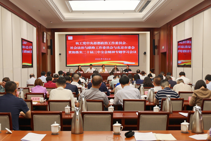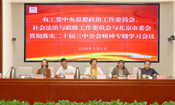 会上,江欣代表农工党北京市委致欢迎辞。农工党中央社会法治与联络工作委员会主任岳向阳、委员刘金财,思想政治工作委员会副主任蒋秋桃、委员王飞交流中共二十届三中全会精神学习心得。会议由李亚兰主持。