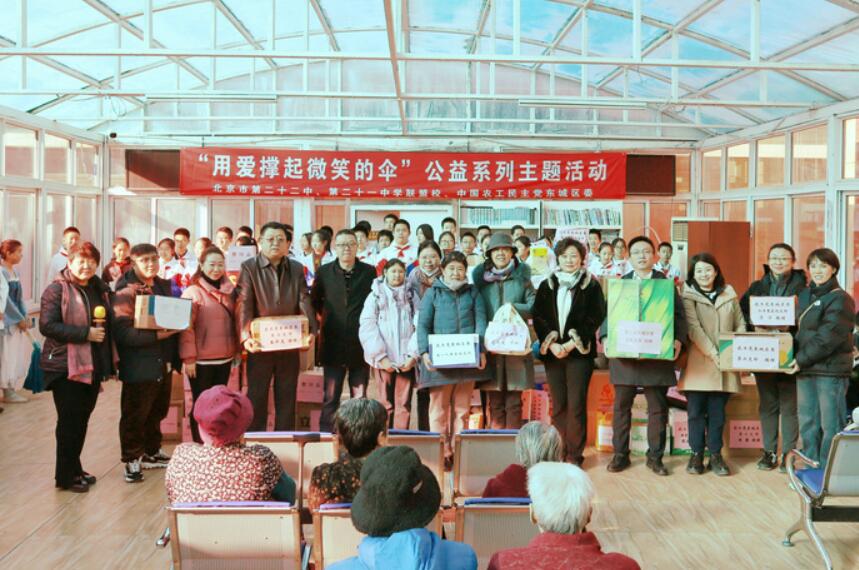 为深入开展“凝心铸魂强根基、团结奋进新征程”主题教育,11月18日,农工党东城区委教育体育专委会、第二支部、北京中医医院支部、和平里医院支部、北京市第六医院支部、隆福医院支部、普仁医院支部、社科院支部、体育支部、文化部支部联合北京市第二十二中学、第二十一中学联盟校,前往区委第二支部“党员服务基地”——密云区鼓楼街道社会福利中心开展“用爱撑起微笑的伞”公益活动。区委原主委危天倪、专职副主委陈芃和26位党员参加。