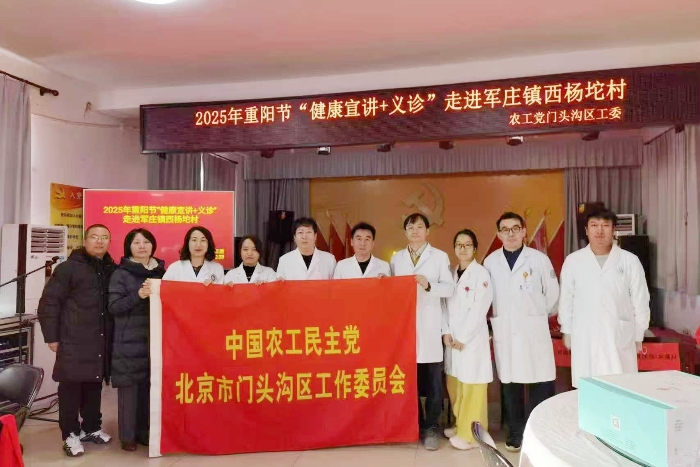 10月28日上午,农工党门头沟区工委组织开展2025年重阳节“健康宣讲+义诊”走进军庄镇西杨坨村活动,为当地村民送上专业医疗服务与节日关怀。门头沟区工委主委张娅,农工党党员专家张立军、刘英、宋涛、张安宁、龚丽娜、张盼、董斌、王凯和龙云参加活动。