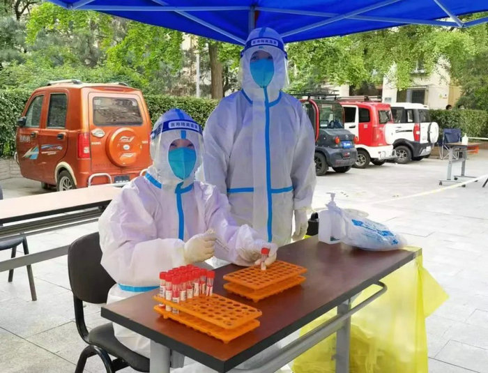 区工委委员张莎娜进行核酸检测工作并参加六里桥社区核酸采样工作