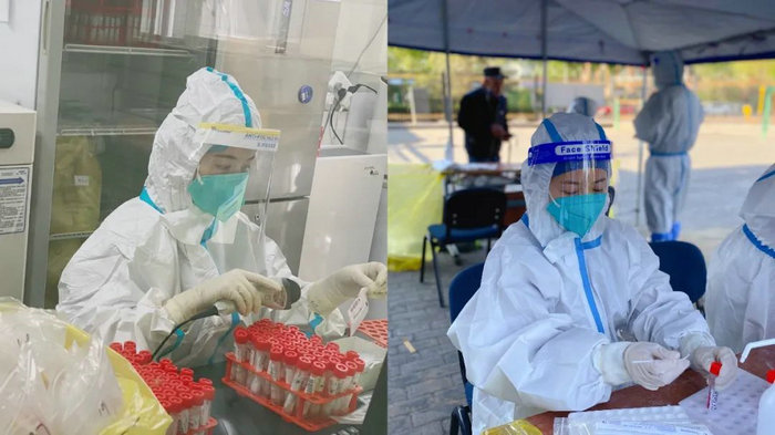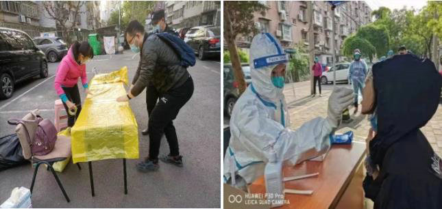 区工委党员王计辰、孙岚参加核酸检测工作