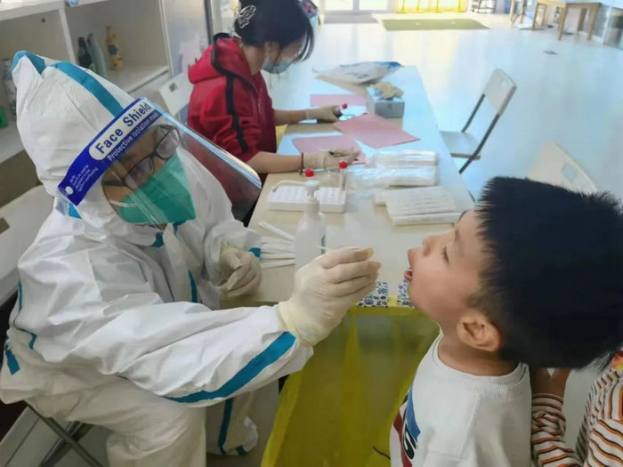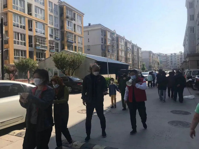 区工委党员王军杰组织带领单位老年驿站职工配合社区做核酸检测工作