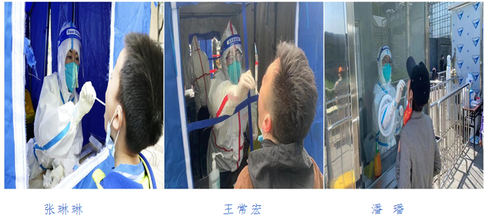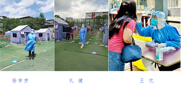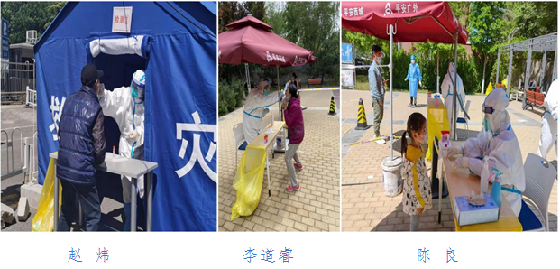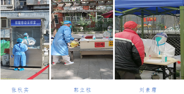 支部党员杨学芳、孔健、王忱,支援西城区展览路街道和陶然亭街道大规模核酸检测。