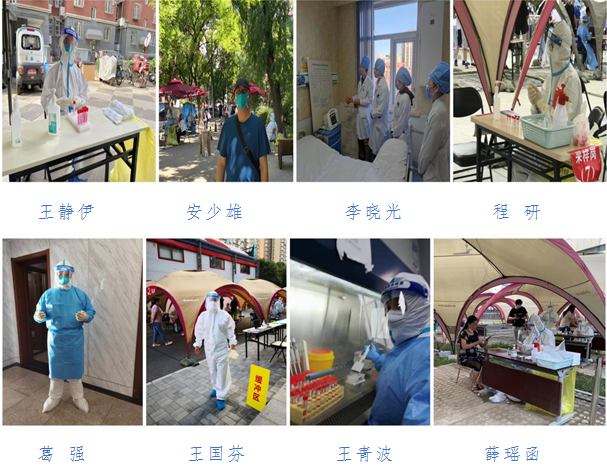 支部党员王静伊、安少雄、孙滨滨、马利群、王青波、王希、葛强、黄坚、李淑菊、薛瑶函、于國志、张俊美、王国芬、李晓光、苗春华、于容至、程研,支援西城区德胜街道、展览路街道、广外街道大规模核酸检测,支援隔离点驻守、疫苗保障、发热筛查工作。