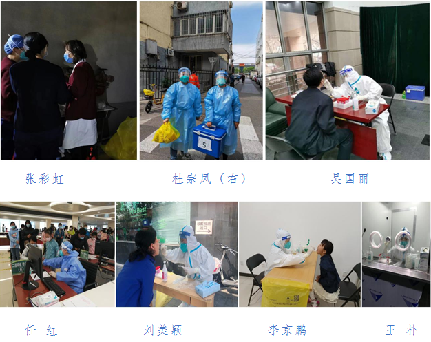 支部党员张琳琳、潘璠、张雪莲、王若安、宗文娟、王常宏,支援西城区椿树街道、白纸坊街道大规模核酸检测和疫苗保障工作。