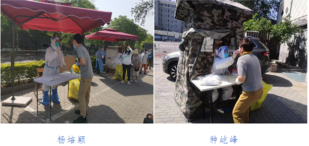 支部党员于宏志、赵新颜,支援西城区广内街道和通州区大规模核酸检测。