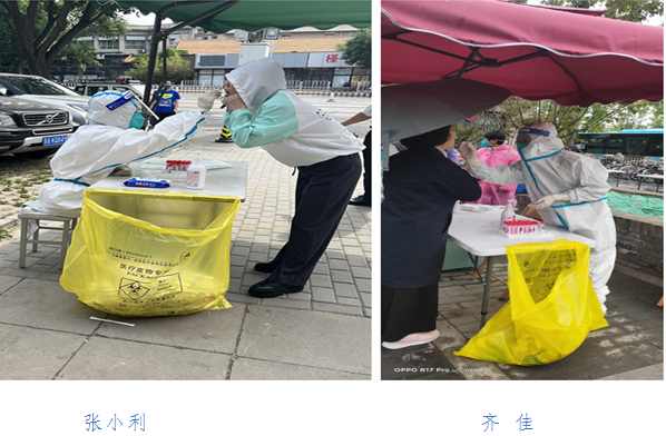 支部党员吴关、王玲艳,支援西城区新街口街道及昌平区大规模核酸检测工作。