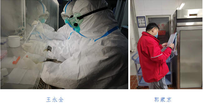 支部党员王永全、郭蒙京参加核酸检测和隔离点驻守工作。