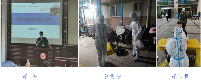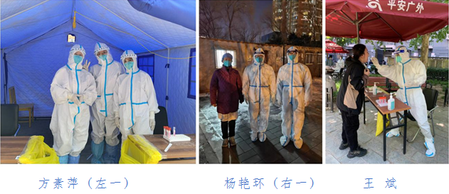 支部党员李杰、王梓、冯向东、张超、李佩、李沛霖、易珺、唐春燕、亢涛、孙莉、丁毅、张秀华、汪颖 、李玉梅,支援西城区月坛街道和广外街道大规模核酸检测、入户核酸采样,在医院开展新冠疫情防控培训。