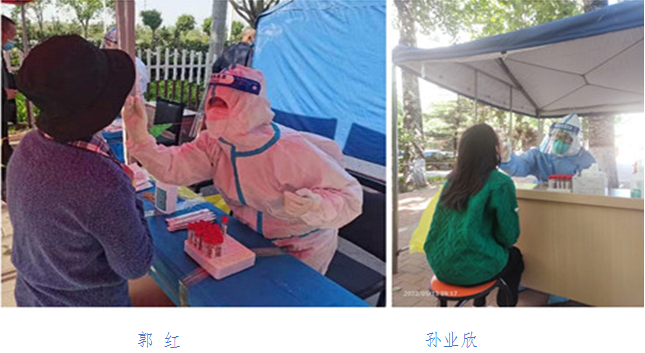 综合二支部党员郭红、卫生健康综合支部党员孙业欣支援昌平区大规模核酸检测。