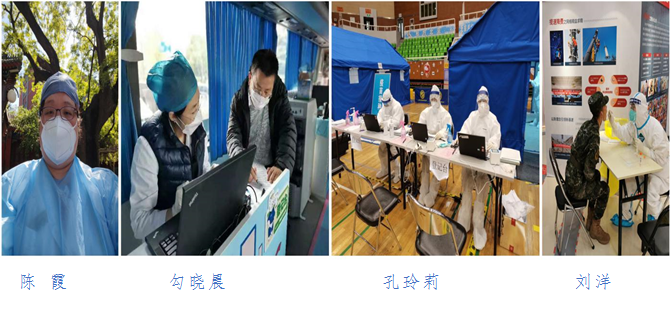 支部党员陈霞、勾晓晨、孔玲莉、刘洋,支援西城区金融街街道大规模核酸检测和疫苗保障工作。