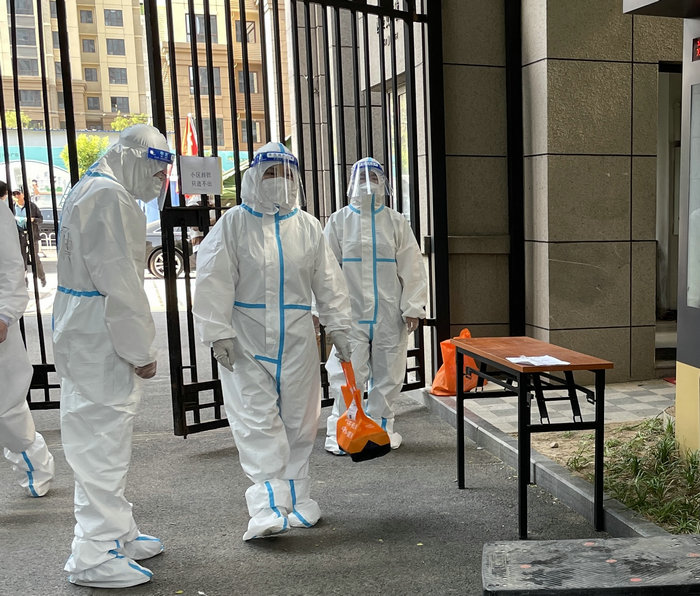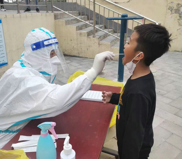 工委委员孙雪娇积极参与外区核酸检测工作,并参与永定镇和龙泉镇核酸集采和封控区的入户核酸工作。
