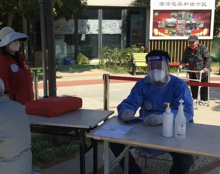 区工委副主委张建涛在完成本职工作的同时,积极参与支援外区核酸检测工作,定期参与社区值守和社区核酸筛查,为疫情防控工作添砖加瓦。