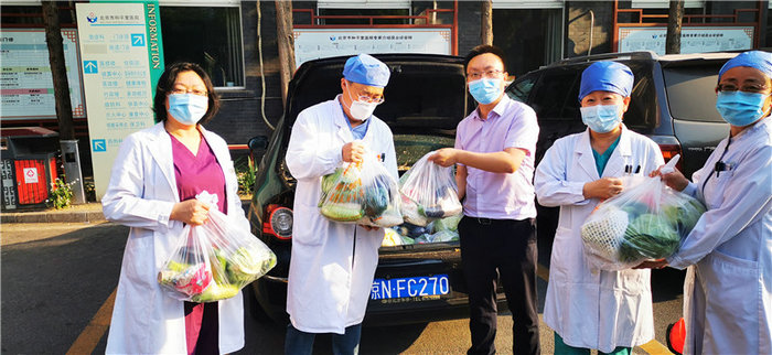 为助力疫情防控工作,农工党东城区委文化工作委员会发起了“温情慰问 传递温暖”主题系列慰问抗疫人员的活动,2022年5月20日下午,农工党东城区委文化工作委员会主任刘长松携带着由菜商邵春明捐助的70余份蔬菜组合的爱心“大礼包”,先后慰问了在北京市普仁医院、北京中医医院、北京市第六医院、北京市和平里医院、北京市疾控中心、北京市隆福医院、东直门医院以及东城区部分社区卫生服务中心从事医护工作,一直奋战在东城区抗疫一线的党员,并向他们致以崇高敬意。多位医护人员表示,从4月中旬以来,他们需要经常支援社区做核酸,忙起来往往顾不上给家里买菜,此次收到这份爱心蔬菜让他们觉得很感动。