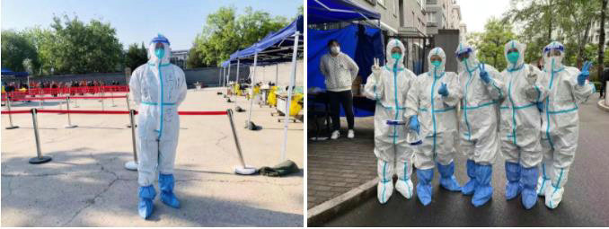 农工党北大医院支部党员大多数为医务人员,为首都抗疫贡献力量义不容辞。党员们除了坚守各自的岗位,做好本职工作之外,还克服困难积极投身到疫情防控中。支部多名年轻党员多次参加了社区的核酸采集工作和志愿活动。在气温飙升的五月,室外骄阳似火,防护服内汗流浃背,但党员们毫无怨言,只要抗疫需要,即使是难得的休息日也义无反顾冲在一线。