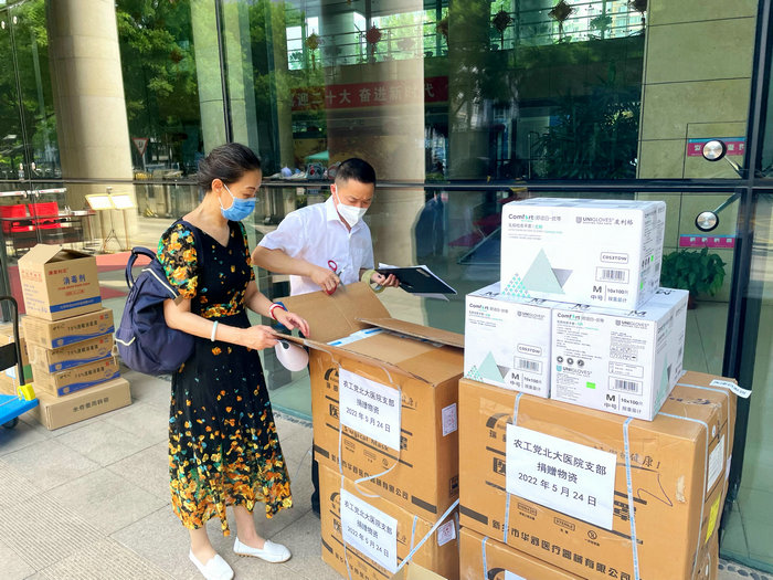 此外,北大医院支部还组织党员们自愿捐款,购买捐赠抗疫物资为首都防疫出力。短短一天时间就收到支部五十余名党员近七千元的捐款,无论是在职党员还是退休党员都积极响应。支部副主委卢薇薇第一时间联系相关供应商统一购买抗疫物资,并于5月24日将捐赠物资顺利送达农工党北京市委。同心抗疫,农工党北大医院支部在行动!