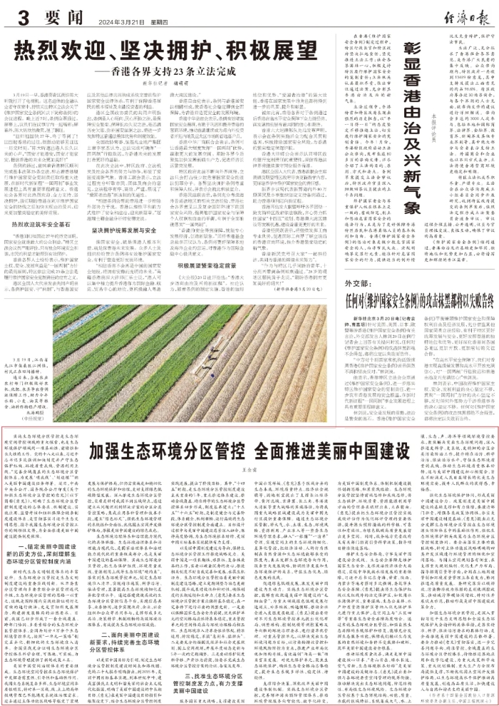 王金南在《经济日报》刊文:加强生态环境分区管控 全面推进美丽中国建设