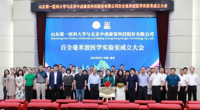 期间,调研组参加了山东第一医科大学与北京中成康富科技股份有限公司共建“百全毫米波医学实验室”的揭牌仪式。