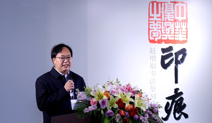 个人命运与时代息息相关,改革开放四十年也是赵增福从事篆刻艺术的四十年。改革开放带来了文化大繁荣,成就了众多优秀的文化工作者。作为历史的见证者与获益者,赵增福为此次艺术展选取了四百余方印蜕和四十多方的放大作品,希望通过以传统文化为载体,寄托对改革开放四十周年这一伟大历程的观察与记录、歌颂与祝福。开展仪式上,赵增福表达了激动与感激之情,学生代表赠送“铁笔柔情担道义,金石豪气上青天”的书法作品,向他表示祝贺。