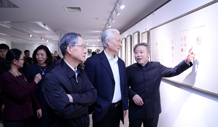 12月22日,由农工党北京市委主办、北京东方书画研究会承办的“砥砺奋进四十载 同心共筑新时代”——庆祝改革开放40周年,赵增福书法篆刻艺术展在中国政协文史馆九层举办了开展仪式。第十一届全国政协副主席、农工党中央原常务副主席陈宗兴出席活动,建设部原部长叶如棠宣布艺术展开幕,北京市外宣办原主任王惠、农工党北京市委专职副主委李亚兰,北京东方书画研究会秘书长刘军分别致辞。农工党北京市委原专职副主委赵荣国,民盟中央、西城区人大、文联、社科联等相关单位的领导和嘉宾参加开展仪式,仪式由北京老舍研究会秘书长王庆泉主持。