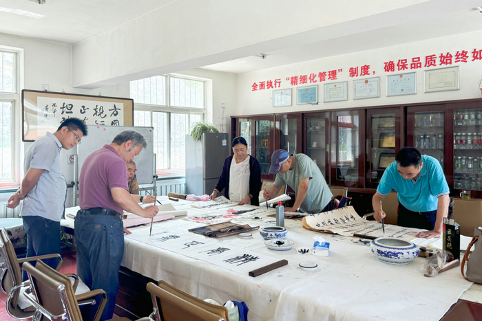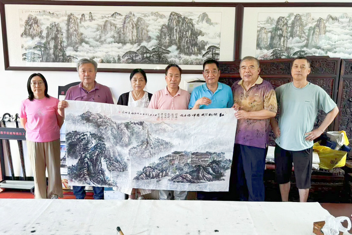 为庆祝中国共产党成立103周年,2024年7月5日,农工党北京市委书画支部在北京昌平区延寿镇黑山寨村宇亚麦饭石矿泉饮料有限公司举办书画笔会活动。农工党北京市委书画支部主委赵增福,党员杨洪斌、谷宝珍、郝良彬、邹为瑞,宇亚麦饭石矿泉饮料有限责任公司总经理刘环,中共昌平区延寿镇黑山寨村书记张秋立参加此次活动。