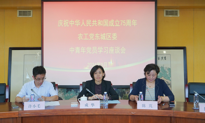为庆祝新中国成立75周年,2024年9月27日下午,农工党东城区委召开中青年骨干党员学习座谈会。区委专职副主委陈芃主持会议,中共区委统战部副部长成华,区委副主委许小毛、熊卫红出席会议。