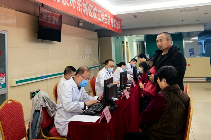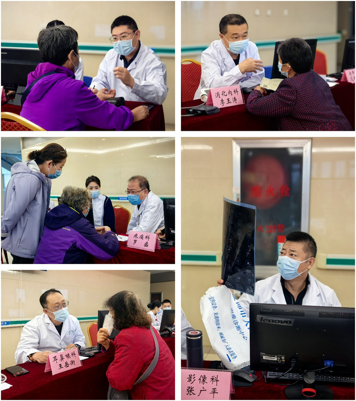 义诊现场,来自北京医院、北京中医医院、隆福医院、和平里医院、普仁医院的党员罗盛、范德宇、李玉涛、王岳衡、张广平为当地群众提供了疼痛科、中医科、消化内科、耳鼻喉科、放射科等科目检查问诊、健康知识讲解及咨询服务。