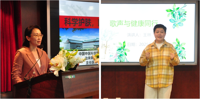 活动中,中国中医科学院治未病体检中心副主任、皮肤科主任医师郎娜以“内调外养·科学护肤”为核心理念,系统阐述通过内在调理改善肤质的原理,并结合实用技巧提供了全方位的护肤指导。妇委会副主任、留法抒情花腔高音歌唱家王琳为大家带来了一场声乐讲座,深度解析了声乐发声的核心技巧,分享了如何科学发声与呼吸训练。