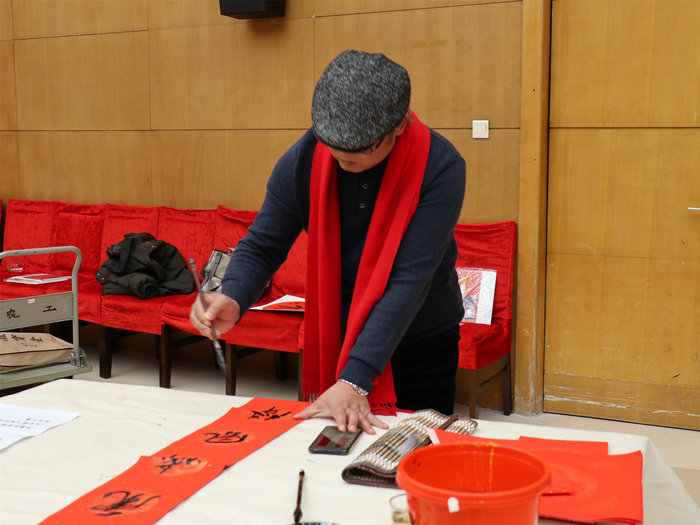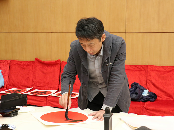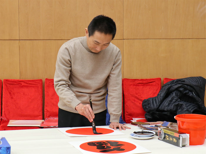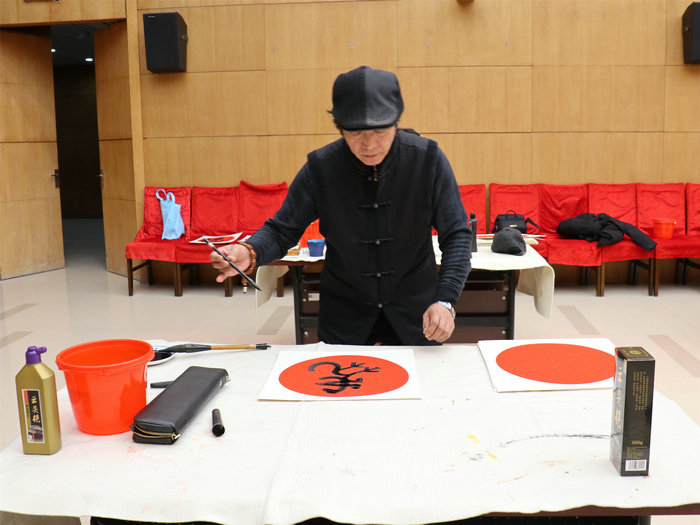 各位艺术家挥毫泼墨,写春联、福字,创作了多幅书画作品,表达了迎冬奥、贺新春的喜悦心情。在热烈的气氛中,书画家们共创作了百余幅书画作品。