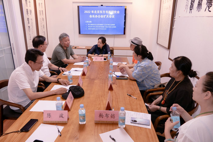 2022年7月15日下午,北京东方书画研究会召开会长办公会扩大会议,组织学习中共北京市第十三次代表大会精神、农工党北京市第十四次代表大会精神,并研究部署2022年下半年工作。农工党北京市委专职副主委江欣,北京东方书画研究会会长陈可之、副会长赵增福、秘书长刘军、理论委员会主任韩朝、中国画艺术委员会副主任谷宝珍、艺术交流委员会副主任卞正林、副秘书长李宜娟,市委会社会服务处处长张亚娟及相关同志参加了会议,刘军主持会议。