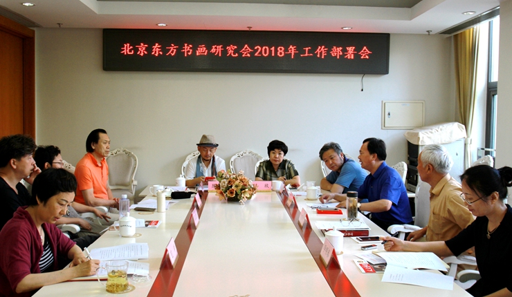 2018年6月20日,北京东方书画研究会在北京市民主党派人民团体大楼召开了2018年工作部署会,会长陈可之、副会长江欣、张军、赵增福,监事长刘平参加会议,秘书长刘军主持。